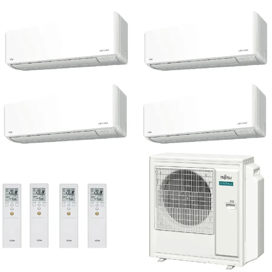 Fujitsu Quadri Split Series KMCG WiFi 9000+9000+9000+15000 Btu airconditioner met warmtepomp, laag energieverbruik, invertertechnologie